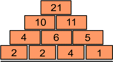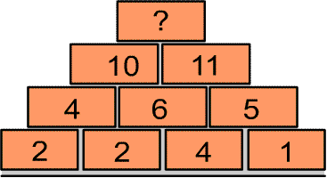 El número de la casilla superior es la suma de los dos números de las casillas inferiores en las que se apoya.