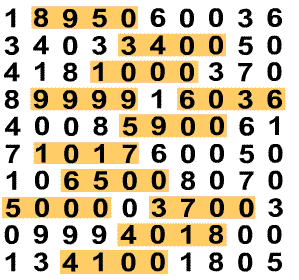 En la sopa de números encuentra los números: mil, mil diecisiete, tres mil cuatrocientos, tres mil setecientos, cuatro mil cien, cuatro mil dieciocho, cinco mil, cinco mil novecientos, seis mil treinta y seis, seis mil quinientos, ocho mil novecientos cincuenta, nueve mil novecientos cincuenta y nueve.