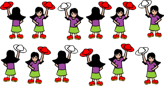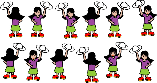 Colorea el sombrero que está en la mano izquierda de la niña.