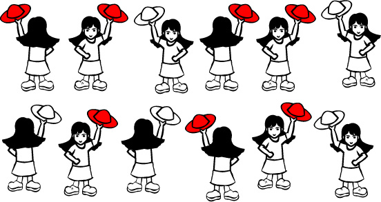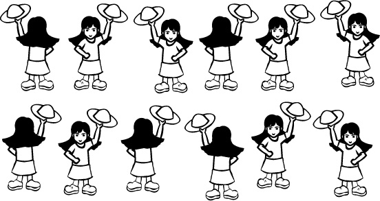 Colorea el sombrero que está en la mano izquierda de la niña.