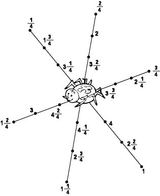 Une con líneas los números del menor al mayor. Empieza en 1/4.