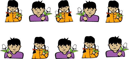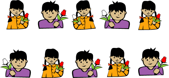 Colorea la rosa que está en la mano izquierda de los niños.